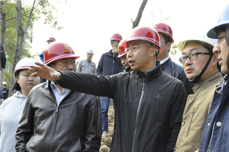 領(lǐng)導(dǎo)一行在京臺高速處初期雨水調(diào)蓄工程項目部調(diào)研
