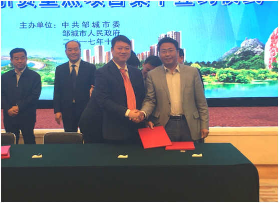 國(guó)禎環(huán)保韓洪彬總經(jīng)理與鄒城商務(wù)局孫局長(zhǎng)簽約