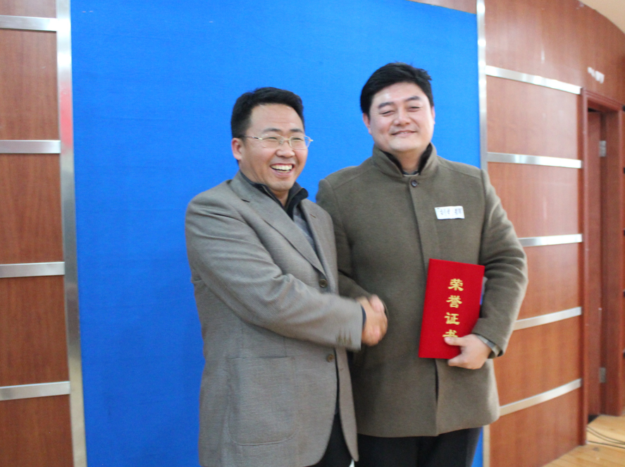 總經(jīng)理韓洪彬?yàn)楂@得一等獎(jiǎng)的選手頒獎(jiǎng)并合影