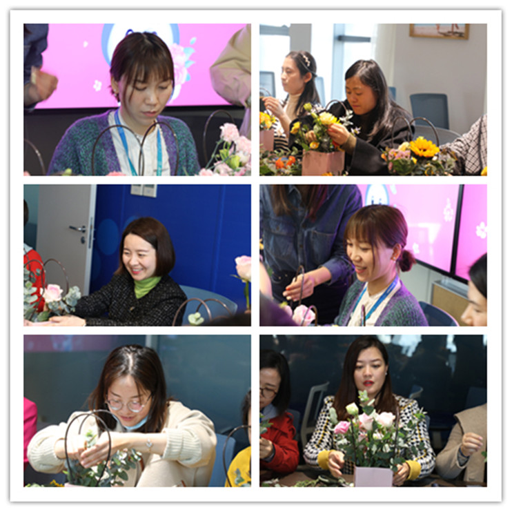 “待到山花爛漫時(shí),她在叢中笑”,步入精心布置的會(huì)議室內(nèi),芬芳拂面,花團(tuán)錦簇,形色各異,溫柔了心境,也溫柔了纖纖細(xì)指,褪下平日的繁忙,女士們靜至一角,時(shí)而折枝,時(shí)而塑形,高高低低,深深淺淺,有歲月的感觸,也有時(shí)光的顏色,手中的是屬于自己的獨(dú)一無(wú)二的美好藝術(shù)——插花的原趣,也就變得生意盎然,整個(gè)會(huì)議室已不再如往日的單調(diào),而如這三月的鮮花,如各自手上的花籃,有姿有態(tài),搖曳生輝,女神們塑造著屬于自己的美,也塑造著屬于自己的美好人生和幸福生活!